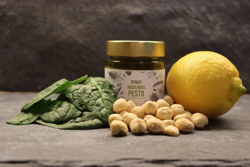 viel frischer Bärlauch mit Olivenöl und Pinienkernen verfeinert
